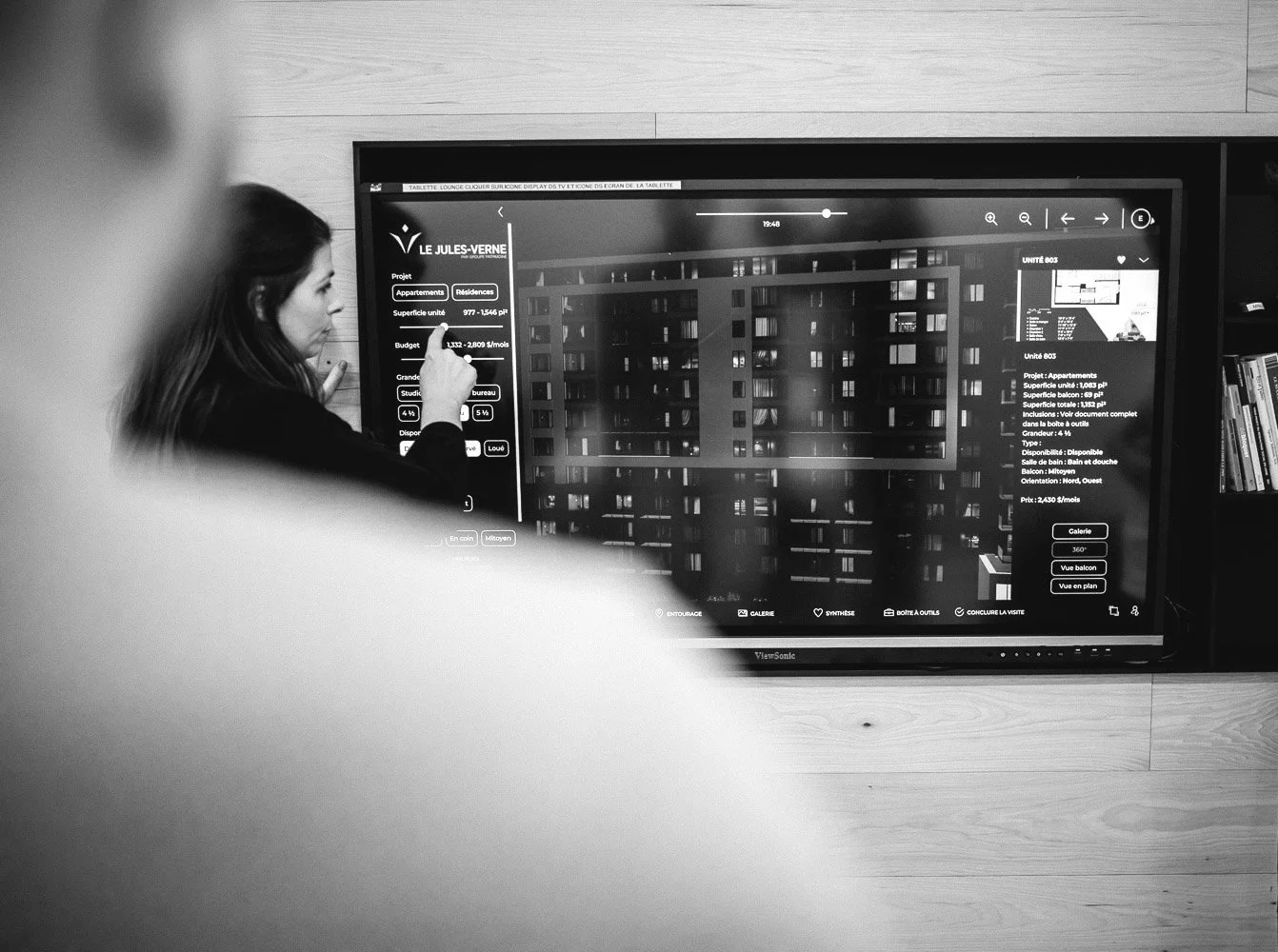 IMMERSION est une application tactile de marketing immobilier en temps réel, qui permet de faciliter les ventes et de recueillir des données avancées sur diverses performances de votre projet. Reliée à votre site web et agrémentée des images et vidéos MINUIT MOINS UNE, ce produit tout-en-un est le moyen idéel pour vous maximiser vos efforts marketing.