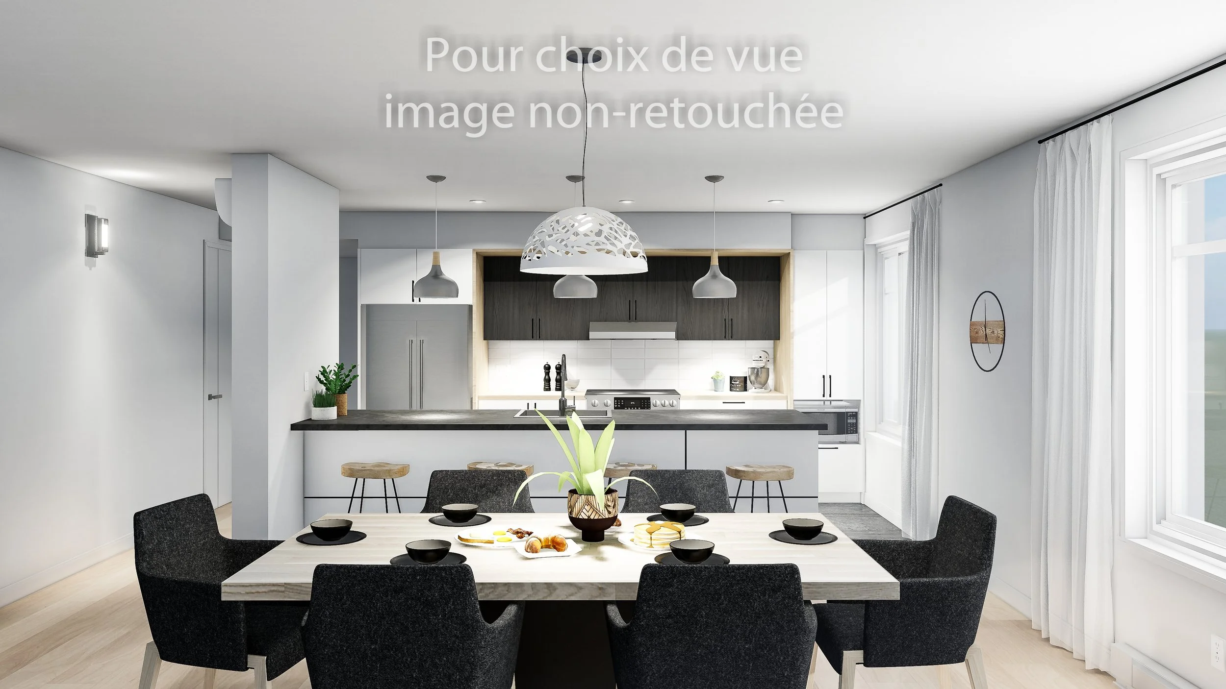 L’image préliminaire n’est pas une image finale, elle n’est pas retouchée et l’ambiance finale n’y est pas représentée. Par contre, on y retrouve déjà le début de l’accessoirisation, de l’ameublement, des luminaires, des matériaux, etc. C’est le moment de nous faire part de vos commentaires sur les éléments cités plus hauts. Ceci est votre première passe de commentaires incluse à votre contrat.